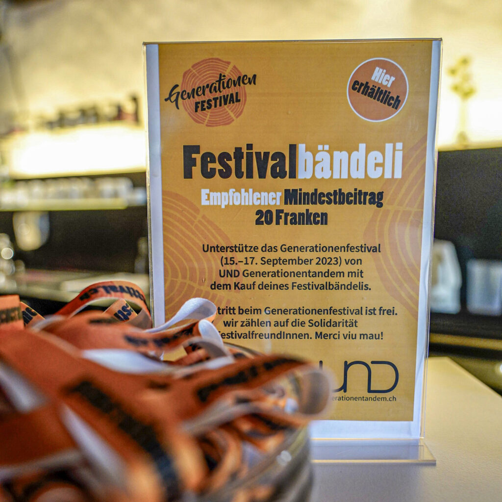Das Generationenfestival 2023 mit 22 Auftritten, 60 Märitständen, einem reichen Verpflegungsangebot, Workshops und der Einladung zum Dabei-Sein geht in die 5. Runde. UND Generationentandem stemmt diesen Grossanlass mit etwa 150 Freiwilligen. Die Finanzierung ist laut OK herausfordernd. Die BesucherInnen bezahlen weiterhin keinen Eintritt, sie können neu mit dem Kauf eines Festivalbändelis ihre Solidarität ausdrücken.