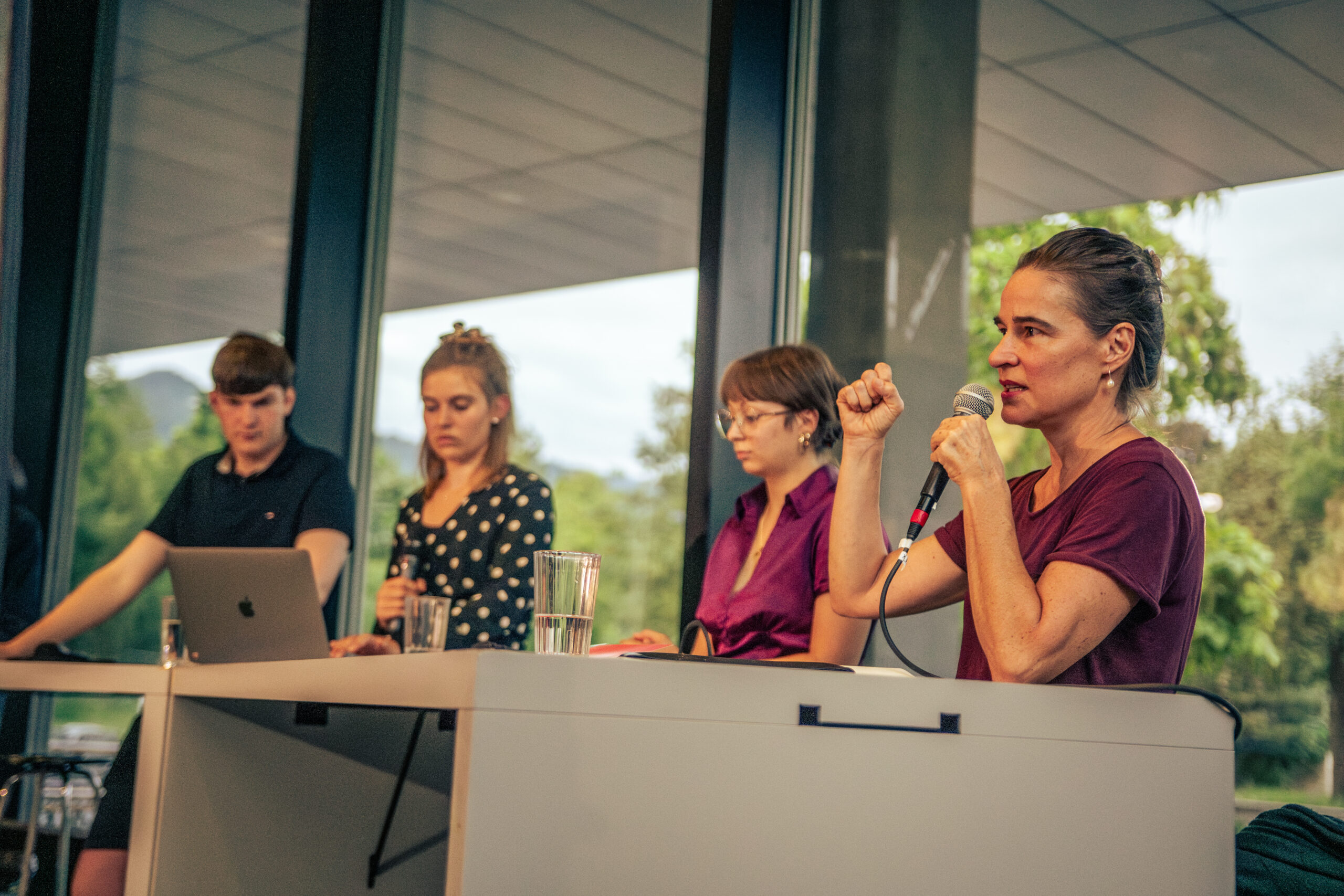 Partizipativ, digital und innovativ – so lassen sich die Podien beschreiben: Das Publikum bringt sich via Mentimeter in die Diskussion mit ein. Via Livestream können ZuschauerInnen aus der ganzen Welt teilhaben. Die Podien stehen später als Video- und Audiopodcast auf den verschiedenen Plattformen zum Nachhören bereit