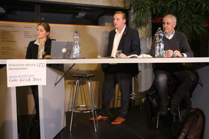 Zu Beginn des Podiums wurde das Publikum aufgefordert, über Mentimeter seine Stimme für oder gegen das Covid-19-Gesetz abzugeben. Besonders interessant sind diejenigen, die vor dem Podium noch unentschlossen waren. Vor dem Podium gibt es 17 Ja-Stimmen, 5 Nein-Stimmen und 14 Personen sind unentschlossen. Ob das Podium einen Einfluss auf die Meinungsbildung resp. Meinung hat, wird am Ende des Podiums nochmals erfasst.