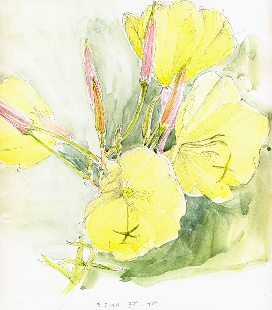 Das Erblühen der Nachtkerze nach Einbruch der Dunkelheit ist ein spektakuläres Naturphänomen. Keine andere Pflanze auf unserem Kontinent öffnet ihre Blüten so schnell wie sie. Innerhalb weniger Minuten verwandelt sie unseren Garten in ein leuchtendes Blütenmeer. Die Plötzlichkeit und Schnelligkeit des Aufblühens hat etwas Magisches und vermag mich immer wieder völlig in seinen Bann zu ziehen. Unterstützt und verstärkt wird die Zauberhaftigkeit des Augenblicks jeweils durch den Duft, den die Blüten verströmen. Sie bleiben die ganze Nacht und den nächsten Tag über geöffnet, schliessen sich im Verlaufe des Nachmittags und verwelken.