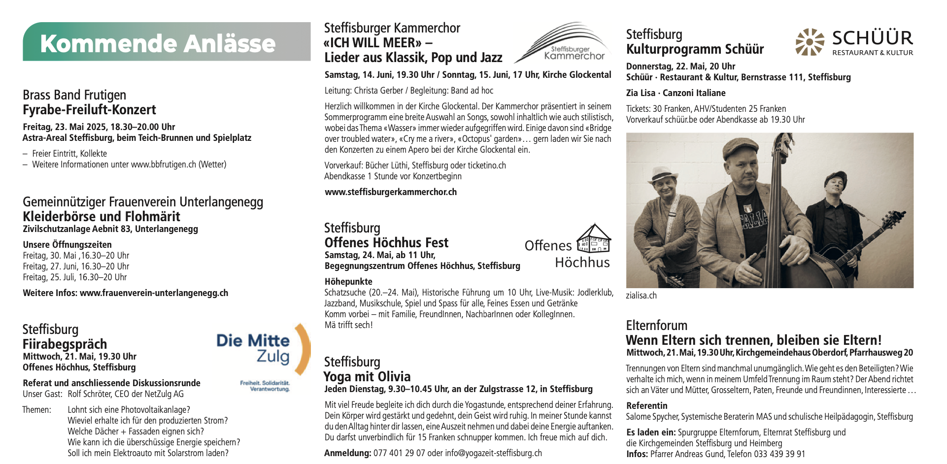 Veranstaltungshinweise in der Zulgpost
