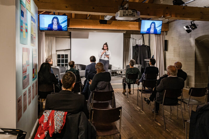 Moderation beim Polit-Forum Bern. – Bild: Susanne Goldschmid