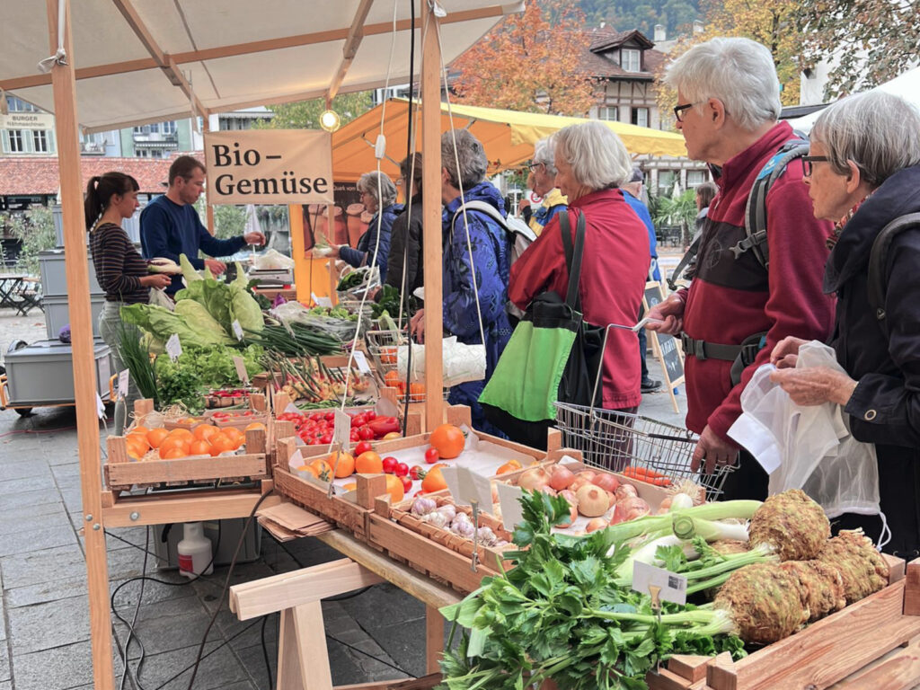Nicht mehr nur Tomaten: Die Gemüsevielfal der Tomaterei Homberg am Märit auf dem Waisenhausplatz. – Bild: Privat