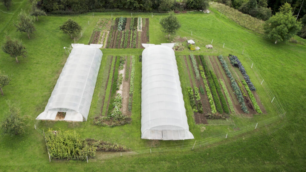 Mit diesem Anbau wird dem Boden Sorge getragen: Luftaufnahme der Tomaterei Homberg. – Bild: Privat