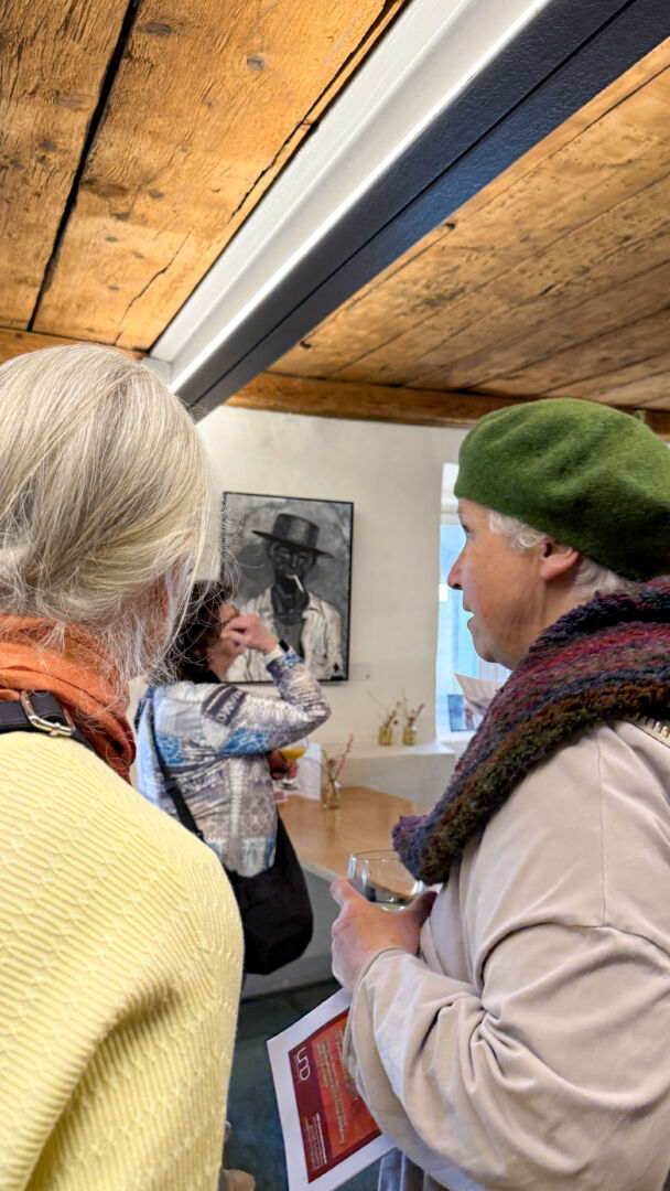 Auch der Ausstellungsort ist speziell. Eigentlich eine grosse Herausforderung mit diesen Wänden und Lichtquellen. Jedoch mit viel Charme, es fühlt sich irgendwie «heimelig» an. Ein Platz zum Verweilen und miteinander ins Gespräch zu kommen.