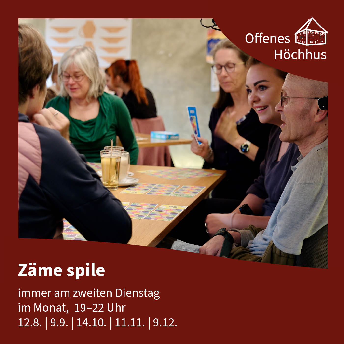Diese Veranstaltung gehört zum regulären Programm des Offenen Höchhus. Das Offene Höchhus ist das Begegnungszentrum in Steffisburg, betrieben von UND Generationentandem. Es ist ein Ort, der allen offen steht, ein Ort, an dem nichts muss und alles kann.