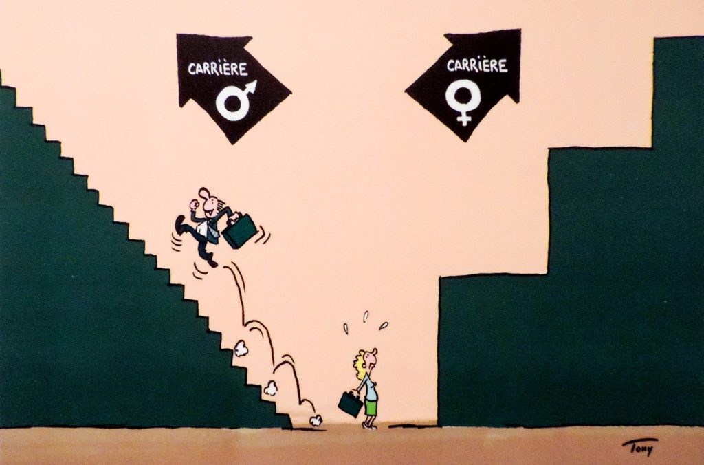 Da fange ich an nachzudenken: Welche Hindernisse gibt es denn, wie schlimm sind sie? Die Mehrfachbelastungen, Kinder – Küche – Karriere…, das kommt mir dann selber in den Sinn. Der Cartoon soll uns nicht alles vorkauen.