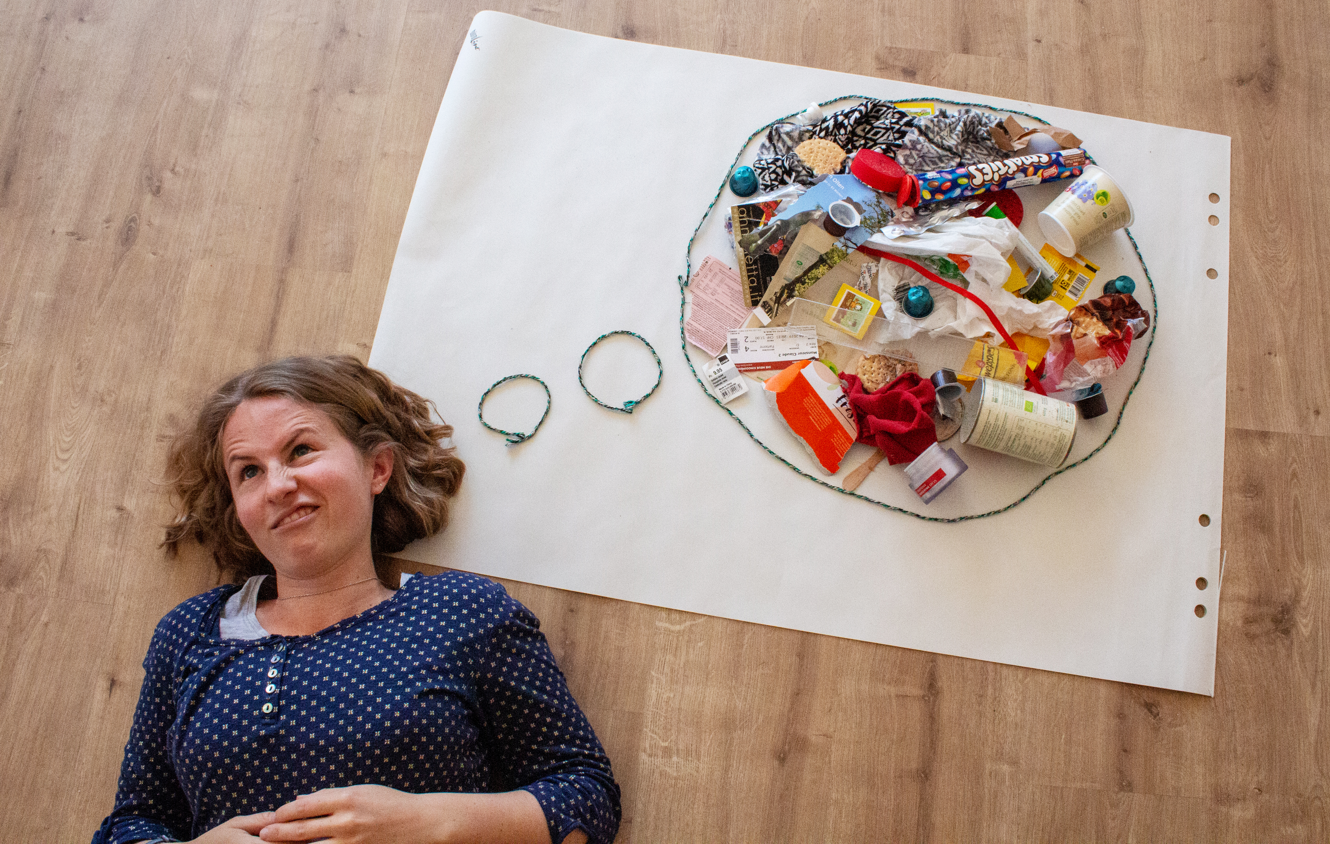 Abfällig dänke: Manchmal haben wir auch im Kopf viel Müll. Die Gedankenblase aus Schnur, gefüllt mit allerlei Abfall, versucht dies abzubilden. Bilder: Mara Ludwig
