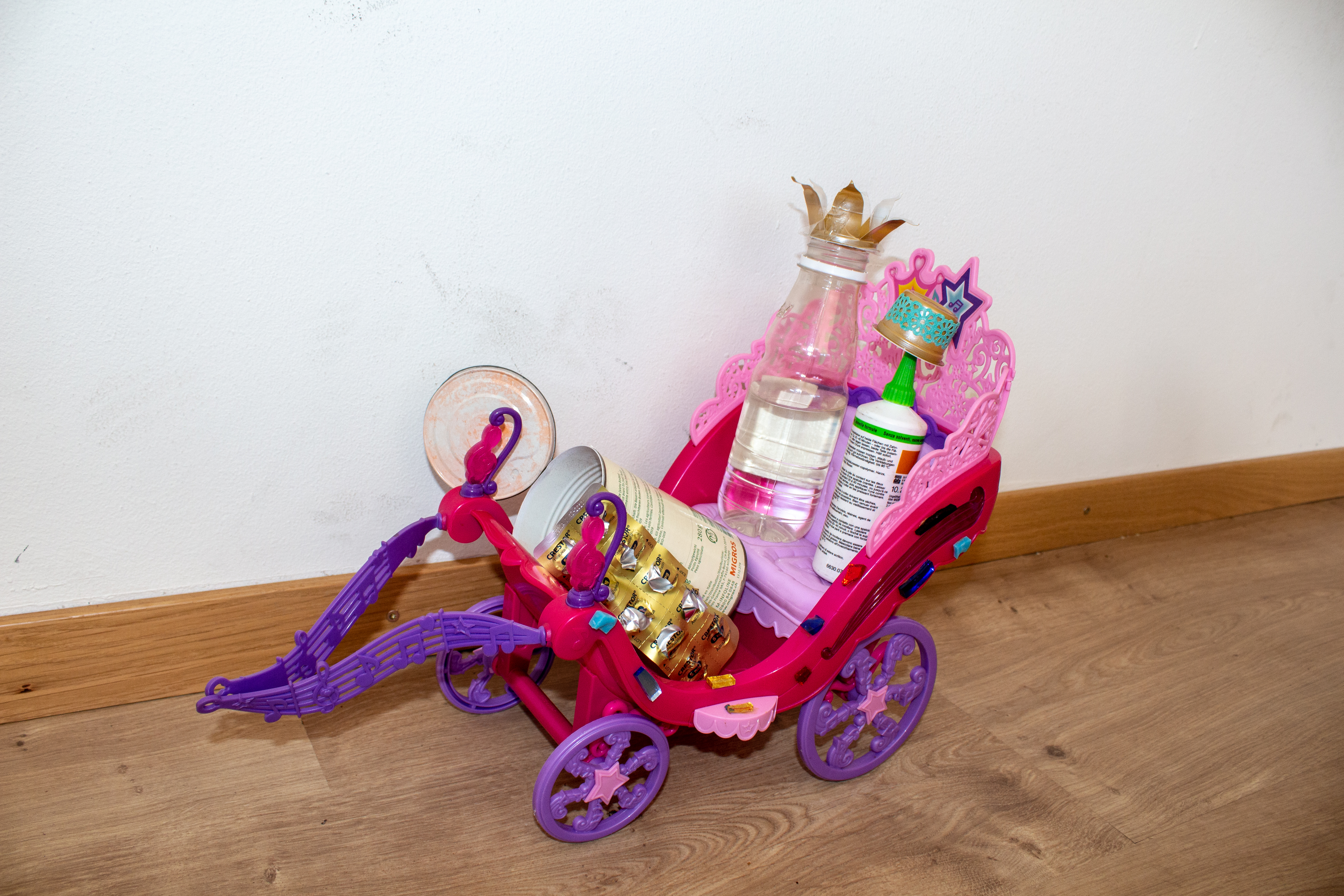 Der am Strassenrand gefundene Barbie-Kutschenwagen musste prompt noch kitschiger werden: «Der süessischt Ghüderwage für Ching».