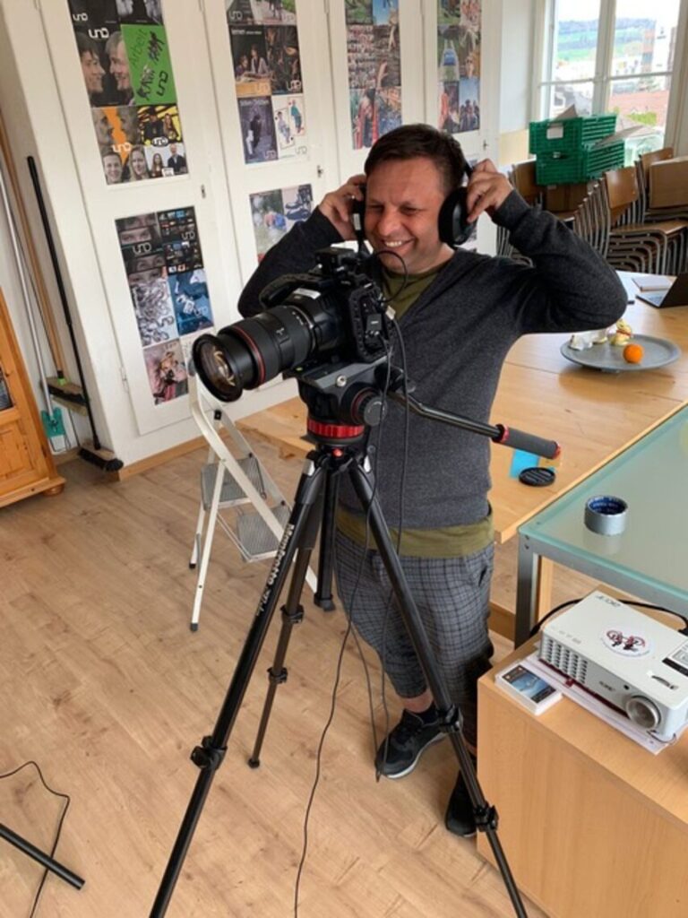Wir lernten Adrian als fixen Allrounder im UND-Raum kennen, bald als Techniker und als Kameramann bei Anlässen. Er, der mit Romanes und Rumänisch aufgewachsen ist, spricht recht fliessend Deutsch. Wohl sucht er hin und wieder nach dem passenden Ausdruck, dennoch: lange Gespräche wie für dieses Porträt laufen mühelos. Adrian hantiert geschickt mit dem Handy, zeigt mir dies und das darauf. Wie geht das alles zusammen mit der Geschichte der Schwester Ramona, die als einzige der Stoians zur Schule durfte?