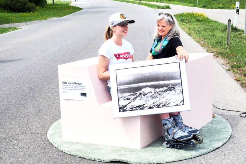 Auf dem Sofa haben sich im April zahlreiche Generationen-Bewegungen an unterschiedlichen Orten in Thun abgespielt. Die Kunstwerke, das Sofa und die Videodokumentation der Gespräche anhand eines ausgewählten Kunstwerkes sind in der Ausstellung im Kunstmuseum Thun (18.8.-18.11.2018) zu sehen.