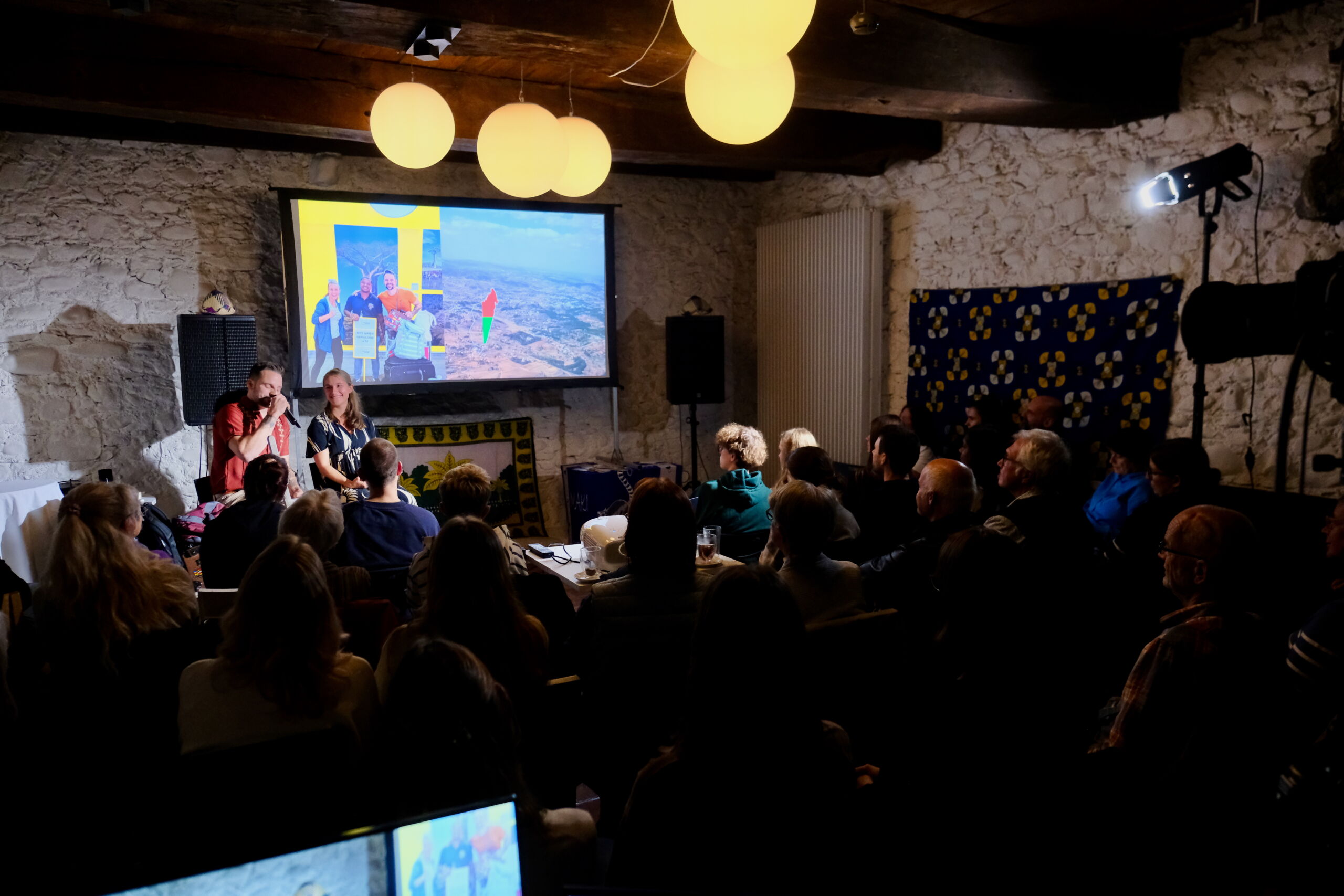Geraldine und Thomas Konrad-Maier berichten am ersten Abend der vierteiligen Reihe «rUND um den Globus» von ihrer Reise durch Madagaskar. Mit Bildern, kleinen Filmen, kurzweiligen Anekdoten und viel Musik nahmen sie das zahlreich erschienene Publikum für eine gute Stunde mit auf die Insel.