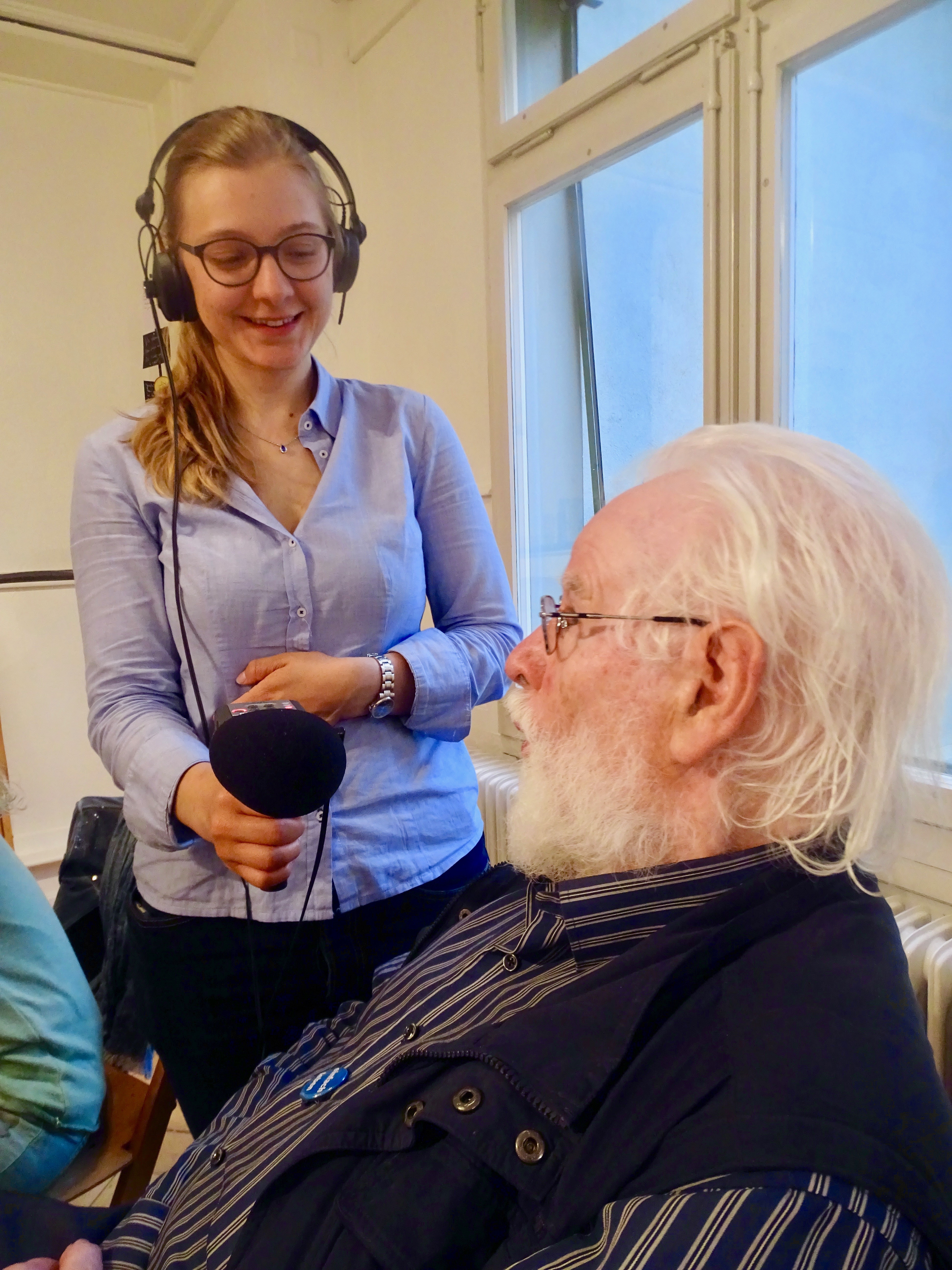 Im Café drunter & drüber am 14. Mai drehte sich alles um Atem. Die TeilnehmerInnen versuchten, Atem irgendwie fassbar zu machen und in Worten, Bilder, Ton oder auf andere Arten darzustellen. Der Workshop wurde geleitet von Sofie Hänni und Mara Schenk. Die beiden jungen Frauen studieren Art Education an der Hochschule der Künste Bern (HKB) und haben – inspiriert von der Ausstellung Jeppe Heins – ein «Atemmobil» gebaut. In dem vierrädrigen Holzkasten-Gefährt befinden sich unterschiedliche Materialen, die für kreatives Schaffen zum Thema Atem verwendet werden können.