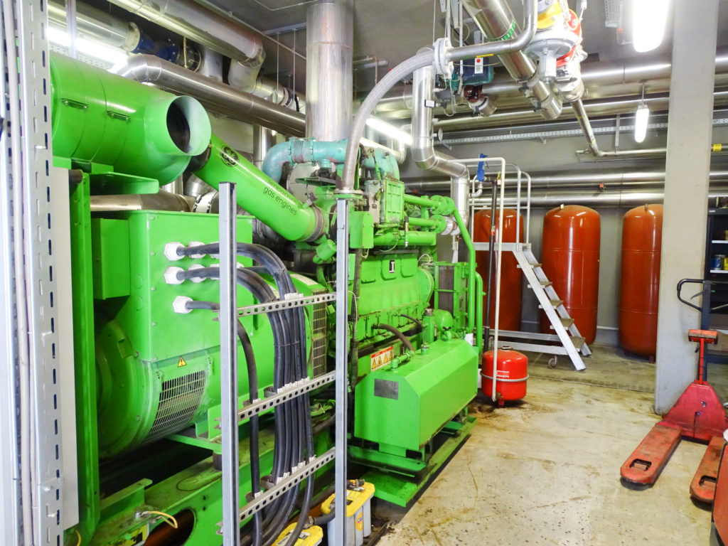 Blick ins Blockheizkraftwerk: Hier wird aus Methangas Strom produziert. – Bild: Walter Winkler