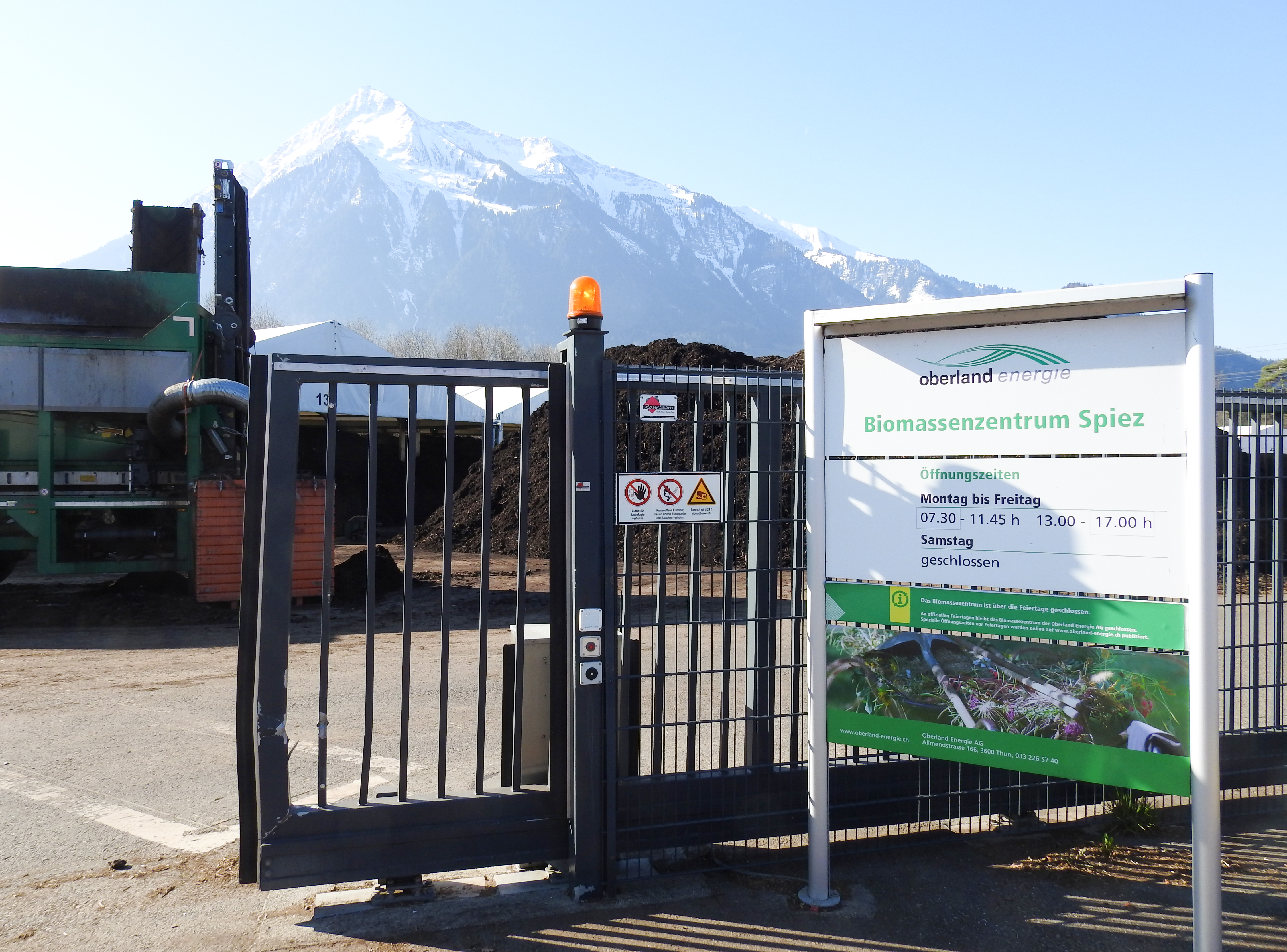 Das Tor zum Biomassenzentrum Spiez. – Bild: Walter Winkler
