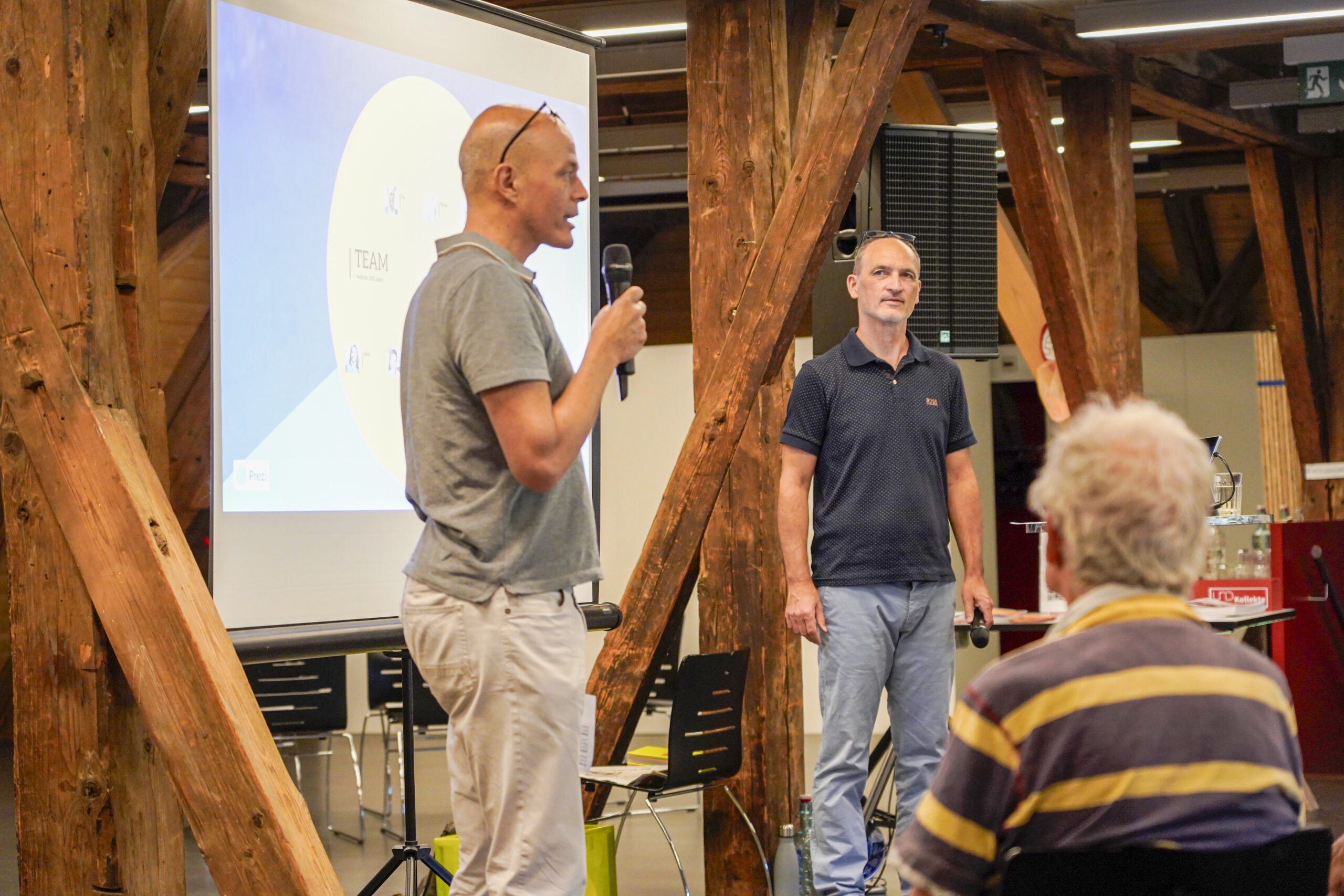 Beim anschliessenden Workshop teilt ein Teilnehmer ein schönes Beispiel: Er lebt mit seiner Frau in einem Reihenhaus. Folgendes hat sich eingespielt: Seine junge Nachbarin mäht ihnen den Rasen, und sie bringen ihr Kuchen oder Blumen aus dem Garten vorbei.
