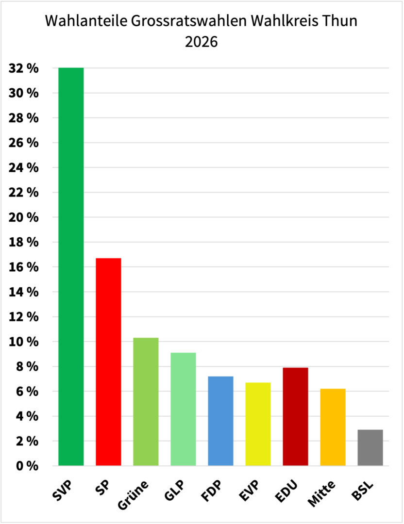Das sind die Ergebnisse des Wahlkreises Thun bei den Grossratswahlen 2026: