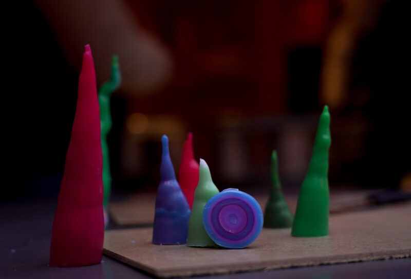 Bald schon kamen junge Mütter mit Kindern im Wägeli. Alle fanden es wunderbar, wie aus mickrigen Schnüren, dicke warme Würste wurden, die die Kleinen beherzt quetschten oder sich sachte an die kalten Wangen halten liessen. Kinder mit der Grossmutter wollten unbedingt JETZT gleich Kerzenziehen und nicht erst am Samstag, wie die Oma vergeblich einwandte.