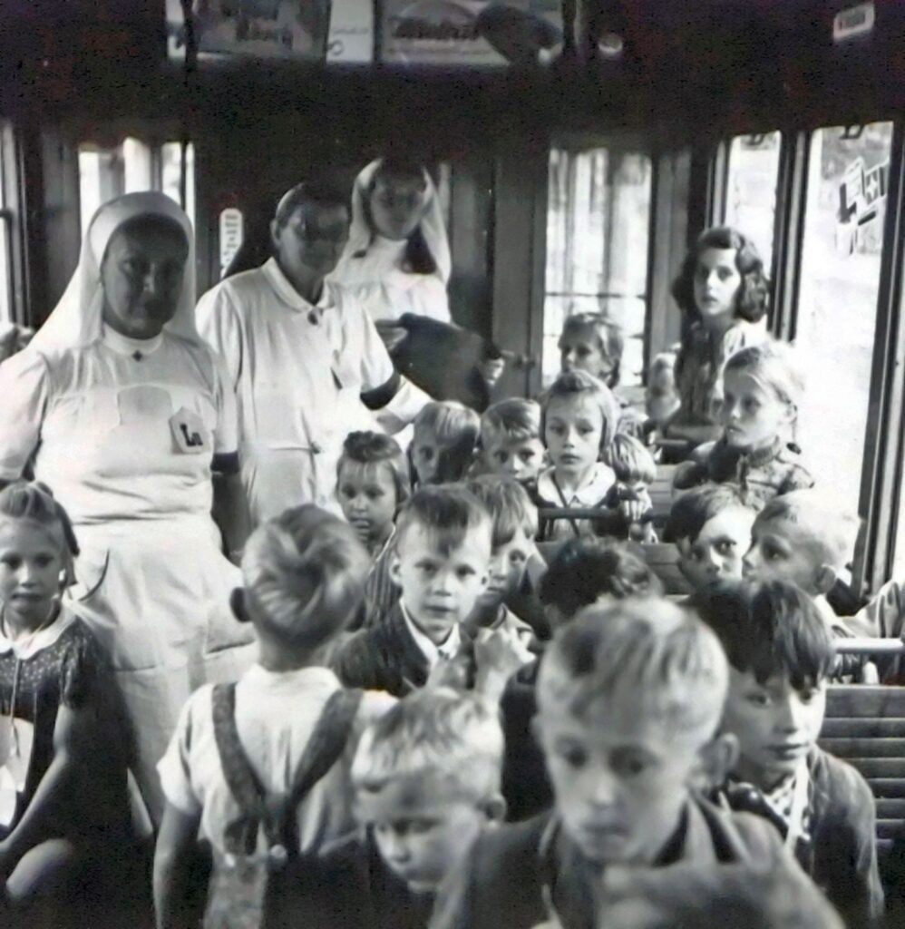 Als der Krieg ein Jahr später, am 8. Mai 1945, zu Ende ging, litt ganz Europa unter Hunger und einem grossen Mangel an allem, was überlebenswichtig war. Deshalb rief die Kinderhilfe des SRK eine Hilfsaktion für erholungsbedürftige Kinder ins Leben. Gastfamilien aus der ganzen Schweiz nahmen Kinder aus den kriegsversehrten Ländern für drei Monate bei sich auf. Sogar deutsche Kinder durften nach Verhandlungen mit den zuständigen Behörden zu uns kommen.