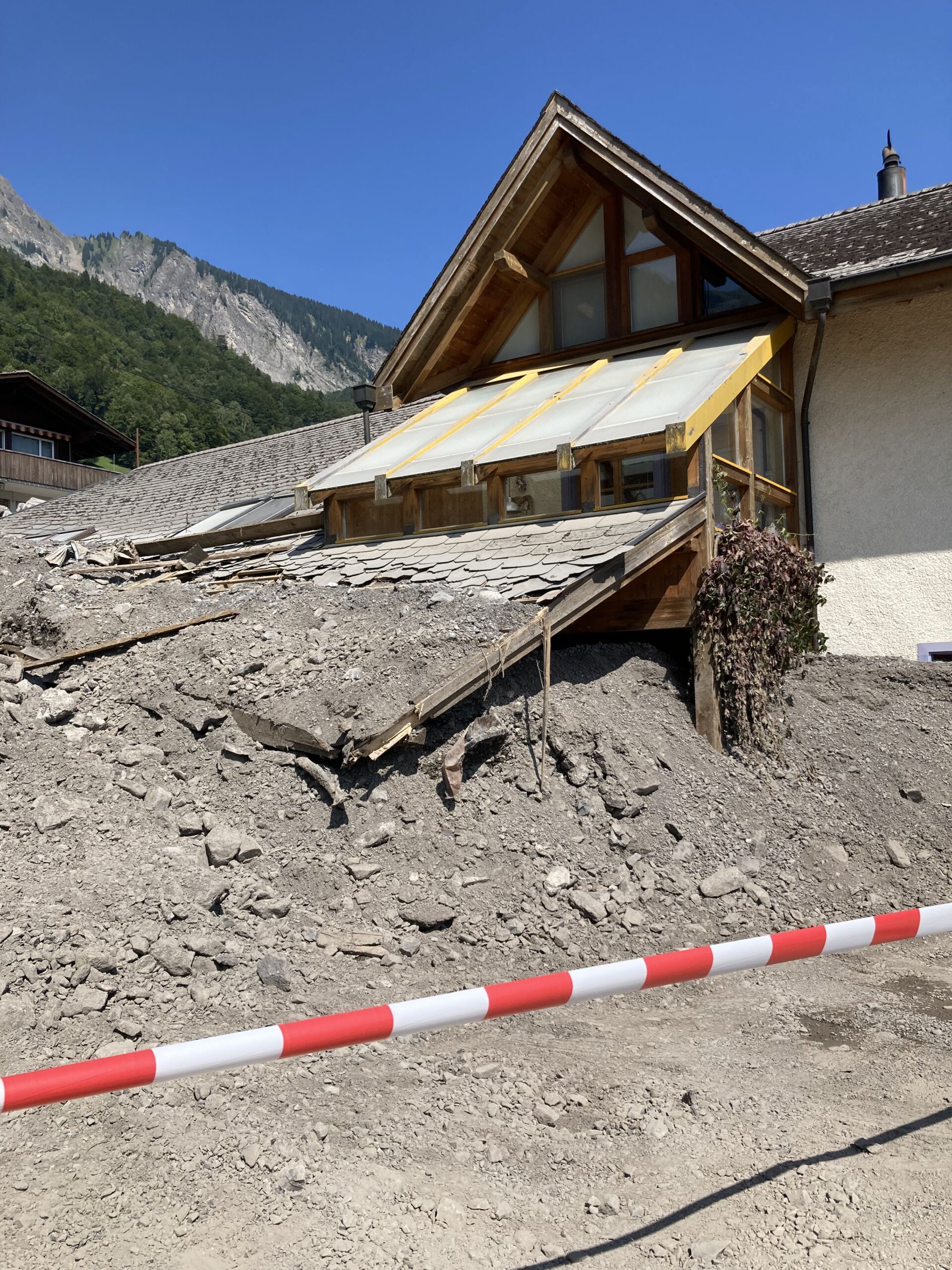 Rasch war der Geschiebesammler überfüllt; eine vielfache Menge von Material stürzte darüber weg. Felsblöcke von der Grösse eines Campers kamen dahergeschwommen. Brücken wurden verstopft. Der Bach teilte sich auf. Plötzlich fanden sich Höslis auf einer Insel. Das untere Stockwerk wurde gefüllt, vom oberen schauten sie geradewegs auf reissende Fluten, die auch ihr Auto mitrissen. Dass ihr Haus nicht weggeschwemmt wurde, verdankten sie wohl einem anderen oberhalb.
