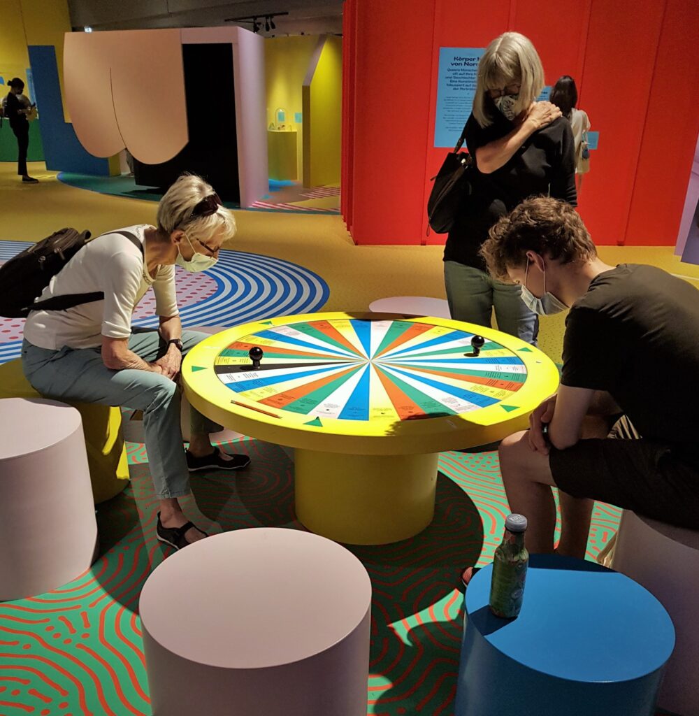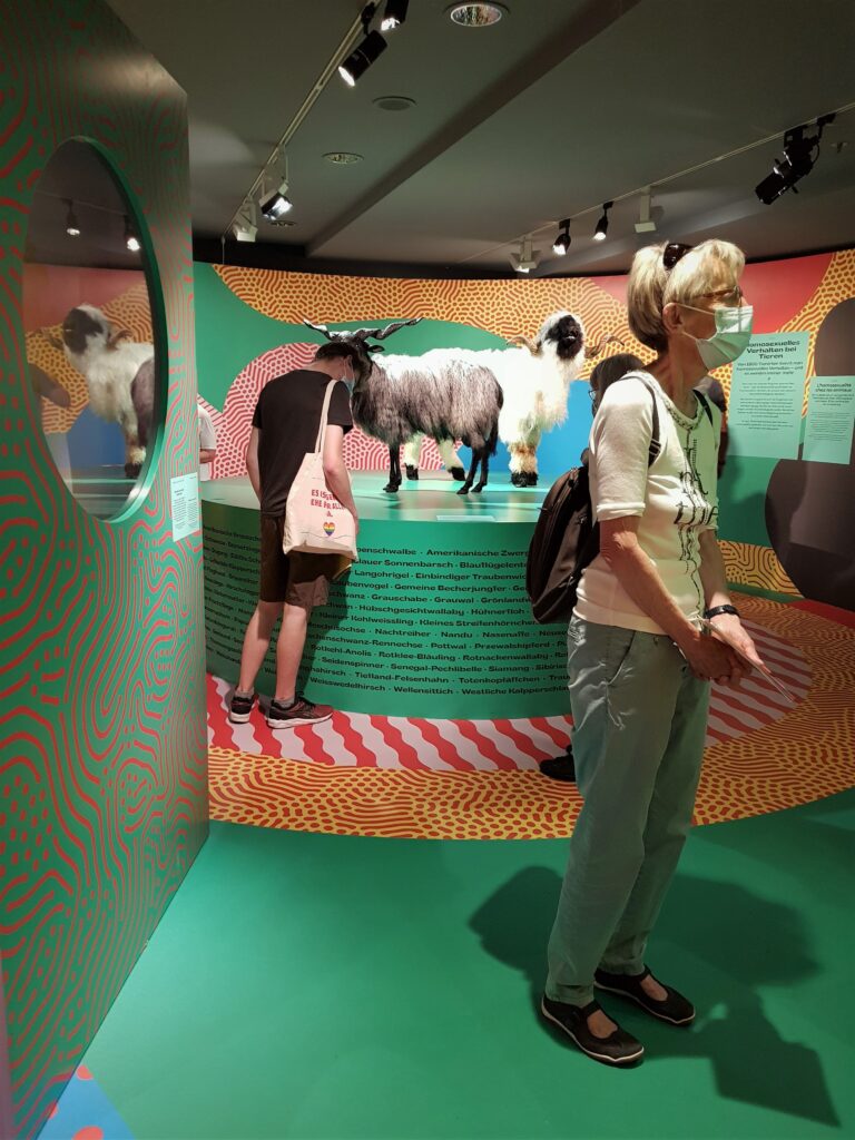 Annemarie: Die Vielfalt der sexuellen Ausrichtungen aller Lebewesen ist im Museum schön dargestellt und erklärt. Es erscheint mir alles logisch – ja, und auch natürlich. An Schwule und Lesben haben wir uns gewöhnt und ausserdem viel über Transsexualität gelesen, gehört und gesehen. Bisexualität kann ich einordnen und seit einiger Zeit weiss ich auch, dass Menschen ohne sexuelle Bedürfnisse asexuell sind. Polyamorie bedeutet, mit mehreren PartnerInnen gleichzeitig eine Liebesbeziehung zu pflegen, ohne untreu zu sein, da alle Involvierten Bescheid wissen. Das ist aber noch nicht alles, ich bin von dieser Vielfalt schlicht überfordert.