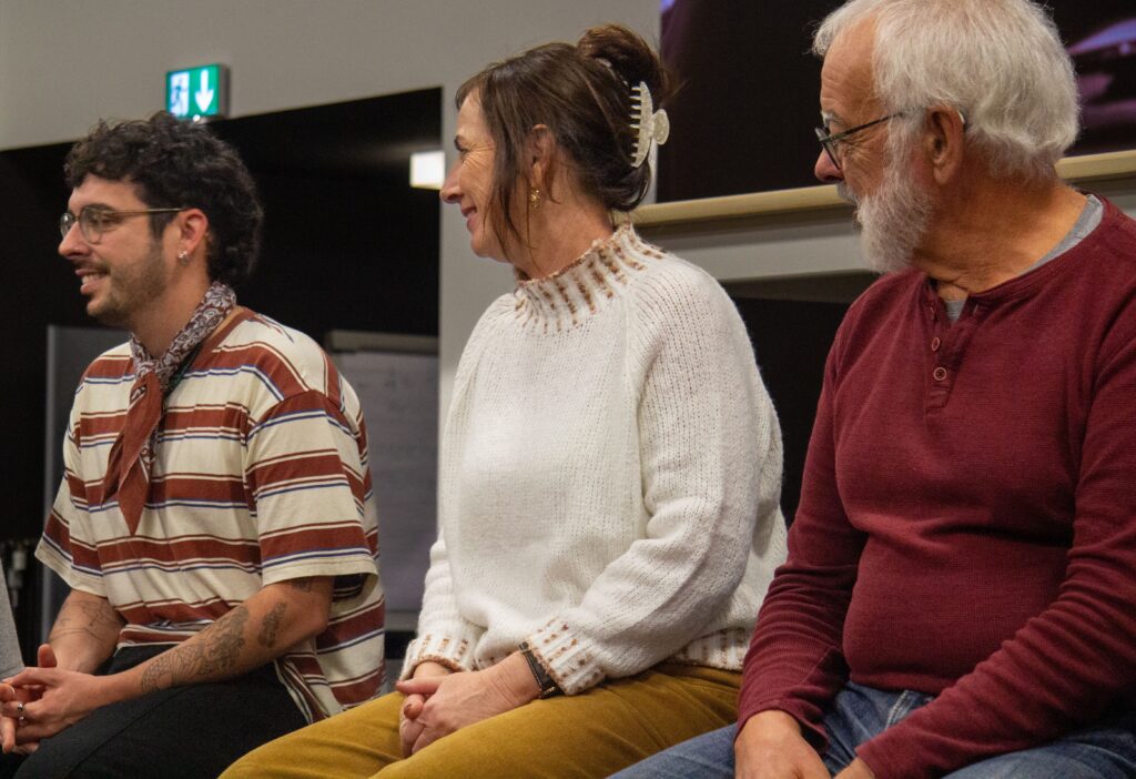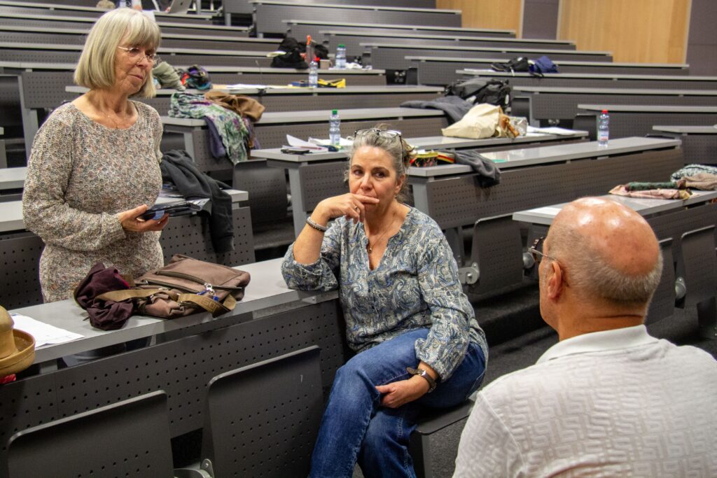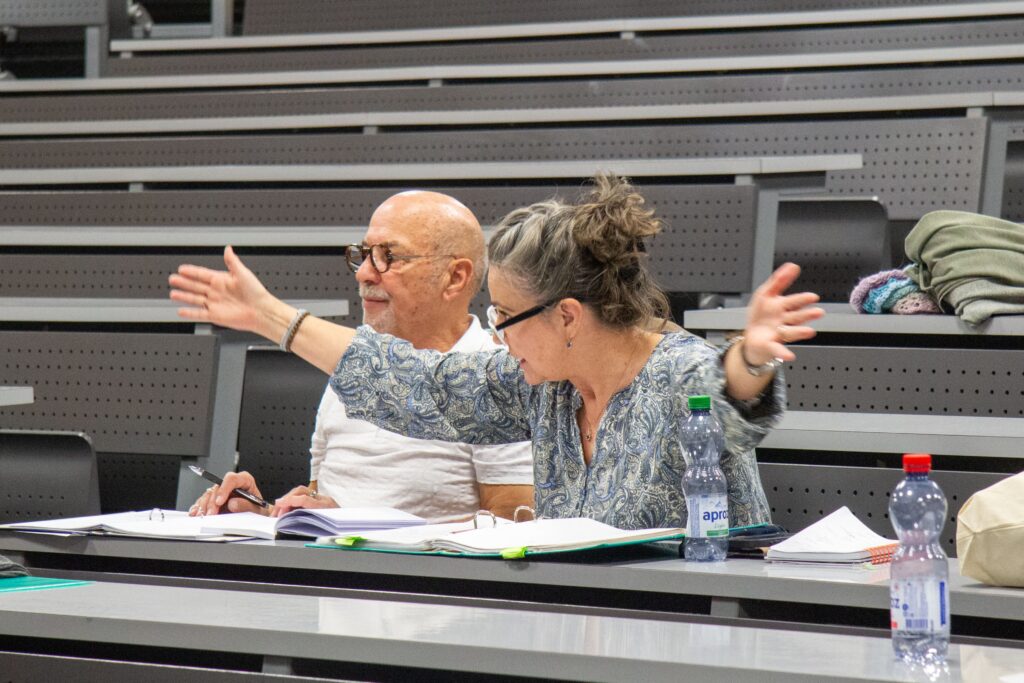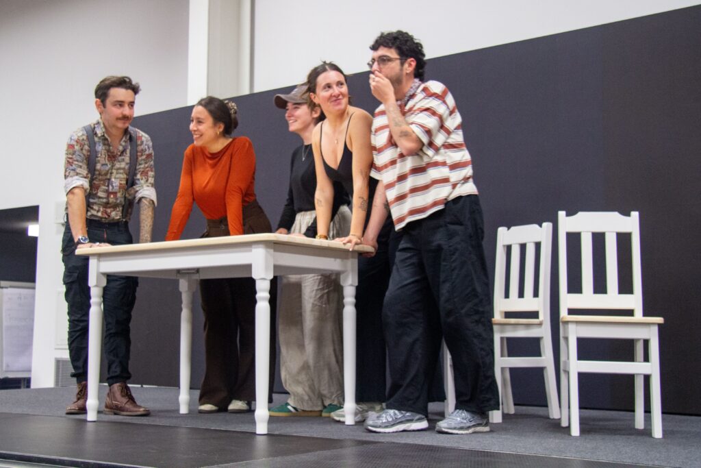 Das Publikum kann an der Premiere zum ersten Mal die definitive Fassung sehen – und hören. Ihr werdet gut hören, da die Schauspieler:innen Mikrofone tragen. Die Aula ist gross und hoch, und es entsteht der Eindruck, an einer Vorlesung zu sein.