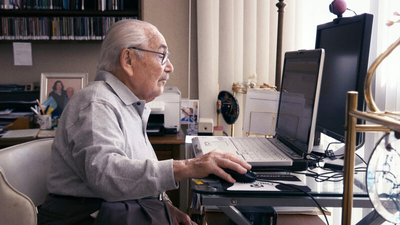 Gespannt blicken Erika und Valeria auf den Bildschirm des Laptops. Hier spielt sich das volle Leben ab. Damen in Netzstrümpfen schwingen ihre Hüften, Männer spielen Golf oder Baseball, ein Paar setzt sich auf seine Harley Davidson und braust davon, eine Rockband spielt auf. Das Erstaunliche dabei: alle ProtagonistInnen sind RentnerInnen.
