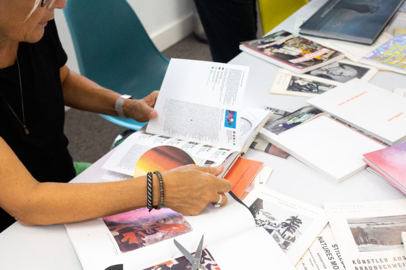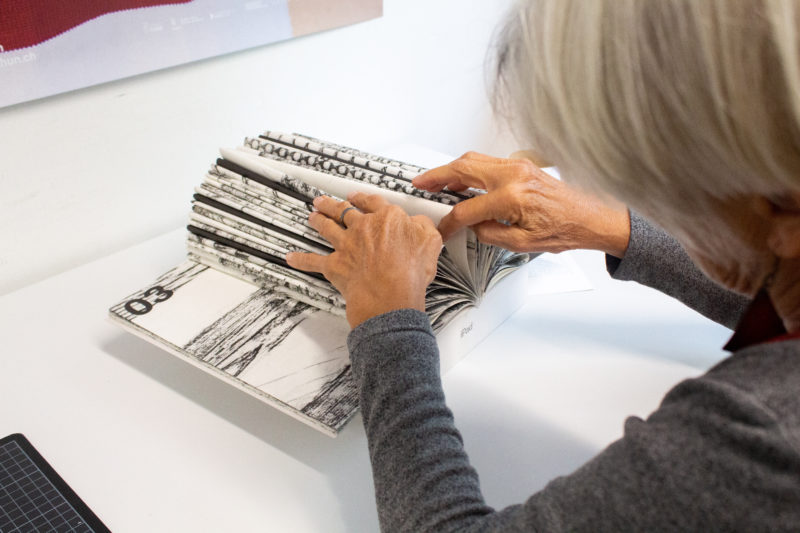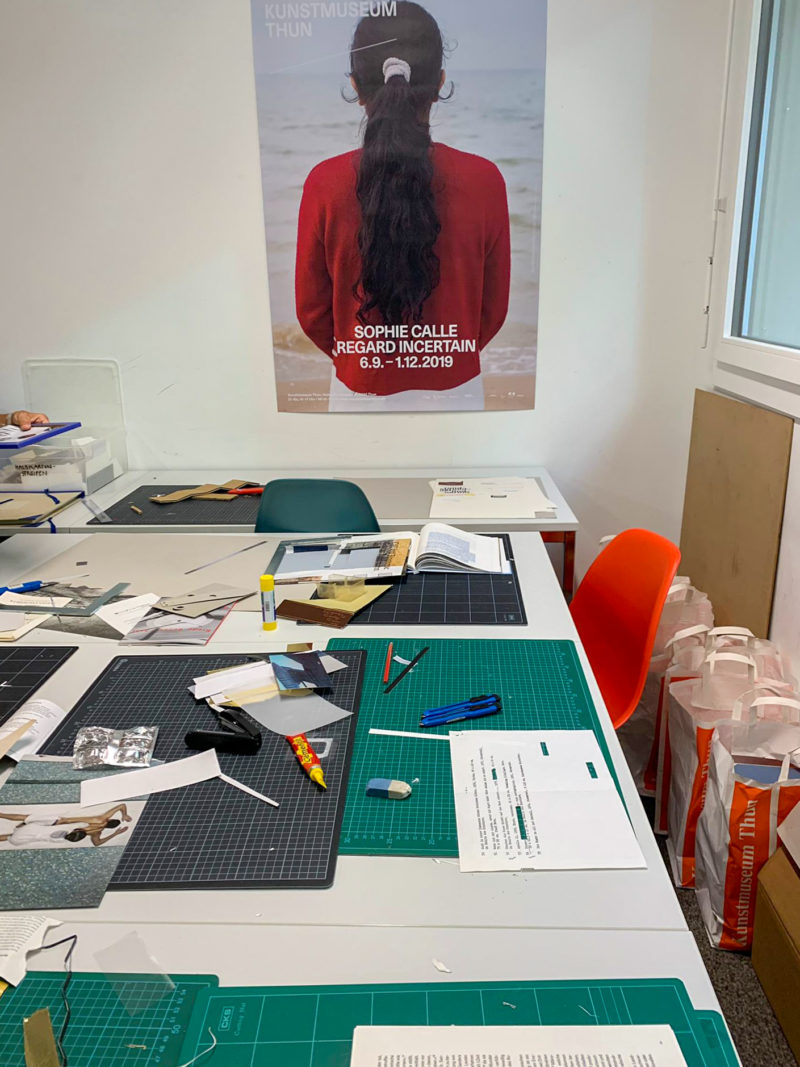 Kunstvermittlerinnen des Kunstmuseums Thun stehen mit Material, Rat und Tat zur Seite. Im Laufe des Tages entsteht eine Ausstellung