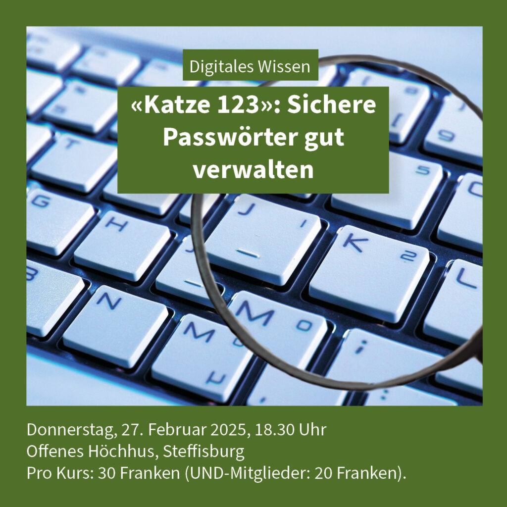 Die Kursreihe «Digitales Wissen» fördert seit 2021 das Verständnis und die Freude an digitalen Medien. Entwickelt von Daniel Roth, Simeon Streit und Marianne Scheuter, bietet sie monatlich an einem Donnerstagabend Hintergrundwissen und praktische Handouts. Die Reihe ist Teil der Technikhilfe von UND Generationentandem.