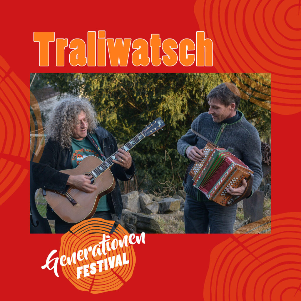 Traliwatsch – das sind Ueli von Allmen und Bruno Raemy, zwei Herzblutspieler. Wie Fische im Wasser leben sie in der Musik. Kinder spüren das sofort und Ueli von Allmen ist sowieso eine stark erheiternde Erscheinung mit beeindruckender Mimik. Er spielt Gitarre und singt Lieder mit Leidenschaft. Bruno ist ein Meister auf dem Schwyzerörgeli. Mit verschiedenen Instrumenten entfacht er ein musikalisches Feuerwerk passend zu Uelis Geschichten. Mitmachen und Mitlachen gehören dazu.