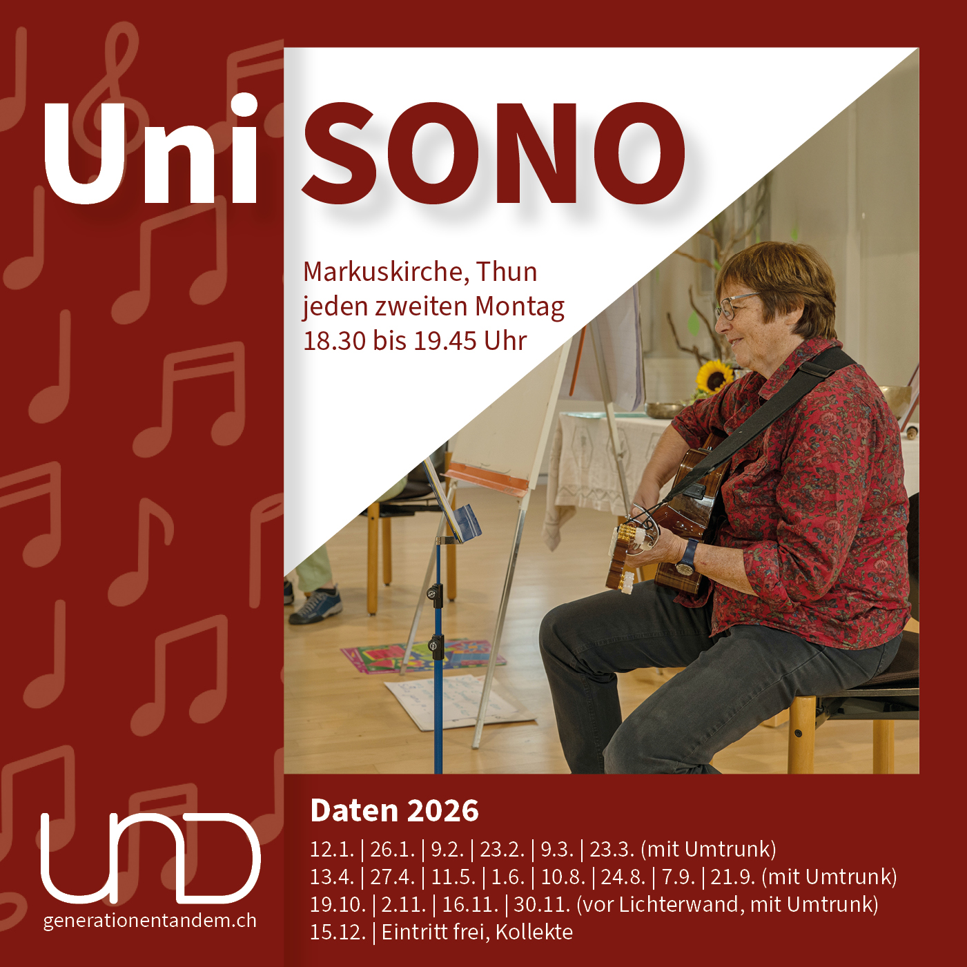 Judith von Ah, Theologin und Musiktherapeutin, führt uns in die Welt der Musik ein. Wir treffen uns jeden zweiten Montag, um gemeinsam mit ihr die schönsten Lieder von nah und fern zu singen. Das offene Singen ist für alle geeignet und setzt keinerlei musikalische Vorkenntnisse voraus.