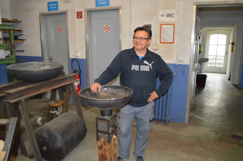 In der Metallwerkstatt leiten Zdenko Horvat (50) und Jan Hirt (23), ein Zivildienstleistender, die Arbeiten. Der gelernte Metallbauer Jan ist während 180 Tagen im Einsatz. Auch Polymechaniker dürfen sich um diese Stelle, die sehr begehrt ist, bewerben. Aus alten Boilern entstehen wunderschöne, mit Finessen ausgestattete Feuerschalen und Grillöfen, die uns Zdenko mit berechtigtem Stolz präsentiert.