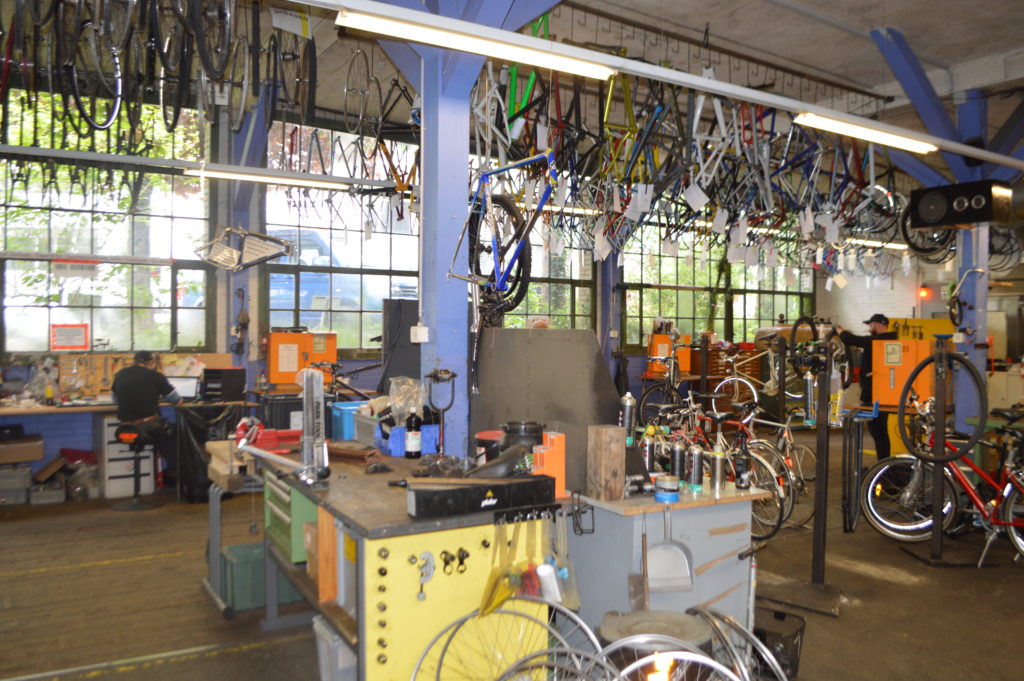 Die Schlüsselanhänger aus Metallbremshebeln und Kerzenständer aus Naben und Speichen, die wir bereits im Shop bewundert haben, werden auch hier angefertigt. Überall spüren wir Begeisterung für die kreative, hochwertige Arbeit.