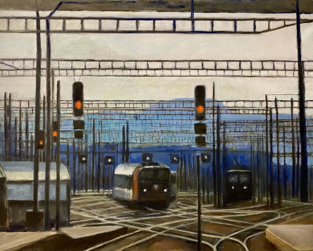 Annegabi Braunschweig malt figurativ, farbintensiv und thematisch variantenreich. Ihr Augenmerk gilt neben poetischen Porträts von Menschen und Tieren, Natureindrücken, menschlichen Aktivitäten, Verkehrsmitteln sowie technischen Errungenschaften. So trifft man ebenso auf einen blumigen Sommergarten, wie auf eine Baustelle oder ein Bahnhofgelände. Braunschweigs Vielseitigkeit in Maltechnik und Auswahl von Farbe findet Gefallen. Auch ich kaufe mir begeistert zwei wunderbare kleinformatige Wasserbilder, die lebhaft im Spiel zwischen Dunkel und Licht miteinander kommunizieren.