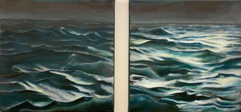 Aus Neugierde frage ich gegen Ende der Vernissage einige Besucher:innen, ob sie mir ihr Lieblingsbild zeigen würden. Zu meiner freudigen Überraschung führt mich ein jeder zu einem anderen Bild: Bildvielfalt trifft auf Geschmacksvielfalt!