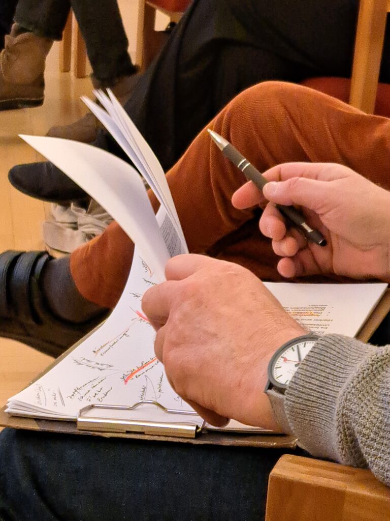 Im Unterschied zum letzten Forum fand der zugehörige Workshop am Tag nach dem Podium statt. Das gestattete der kleinen Gruppe, das am Vortag Gehörte auf persönliche Weise zu vertiefen.