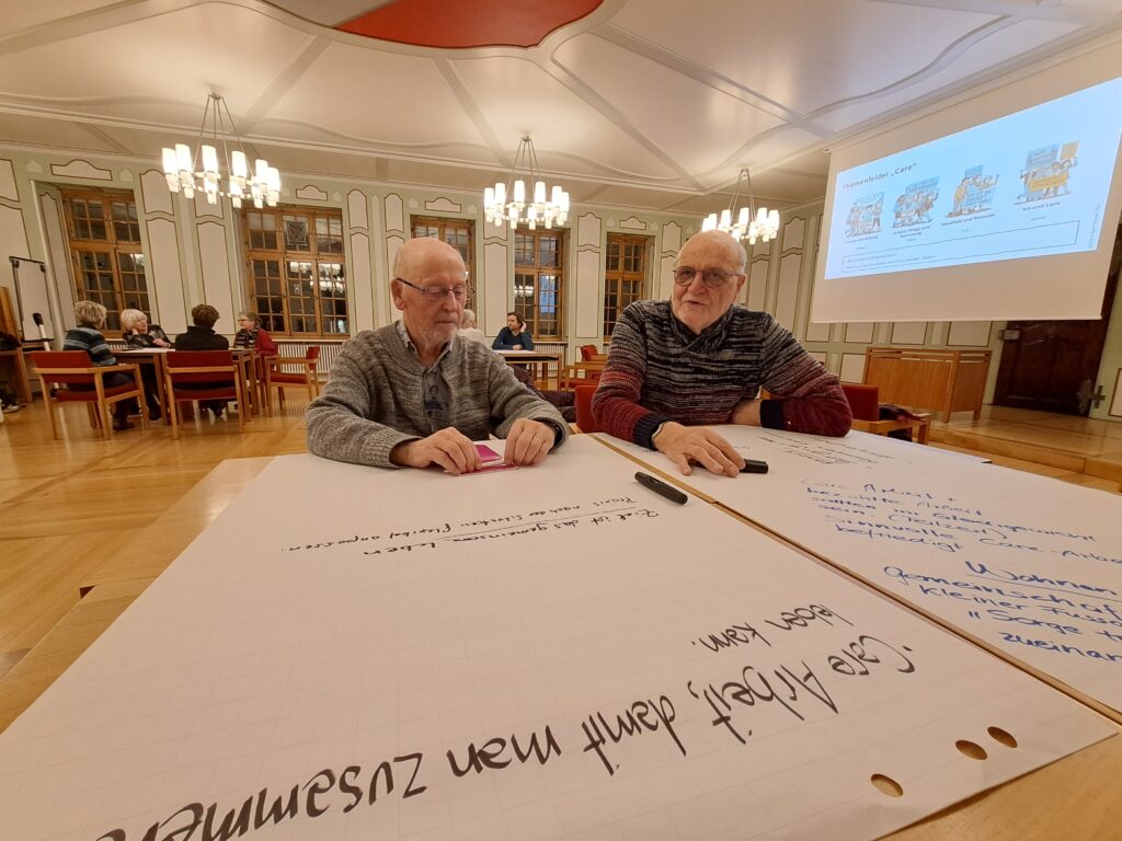 Schon der prall gefüllte Rathaussaal zeigte auf, wie stark das Thema Care-Arbeit die Menschen mobilisiert. Das Publikum wurde nicht enttäuscht: Vier kompetente und engagierte Persönlichkeiten begeisterten durch ihre Fachkompetenz und ihr persönliches Engagement.