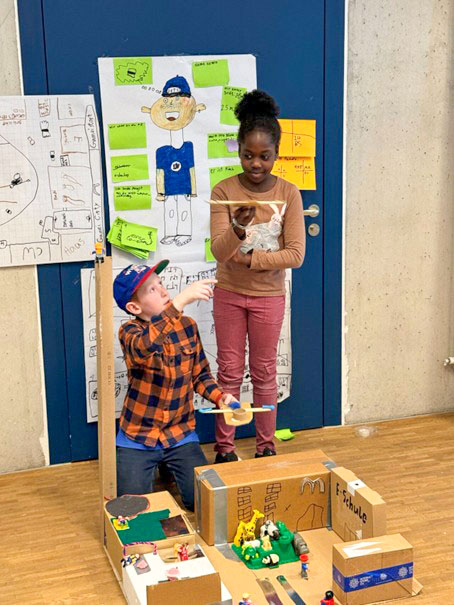 Im Projektlabor wird die Methode des «Design Thinking» als Werkzeug des spielerischen, selbstbestimmten und projektbasierten Lernens angewendet. Ursprünglich wurde sie als eine kreative Problemlösungsmethode im Bereich des Produktedesigns eingesetzt. Design Thinking ist Haltung, Vorgehensweise und Methode zugleich. «Die Kids lernen, die Perspektiven einer anderen Person einzunehmen, Herausforderungen und Probleme zu benennen», erklärt Sophie. Darauf basierend entwickeln sie Lösungsansätze, erstellen Prototypen, testen diese aus und erhalten Feedback. «Auch das Scheitern und der Umgang damit sind ein integraler Bestandteil des Lernprozesses.»