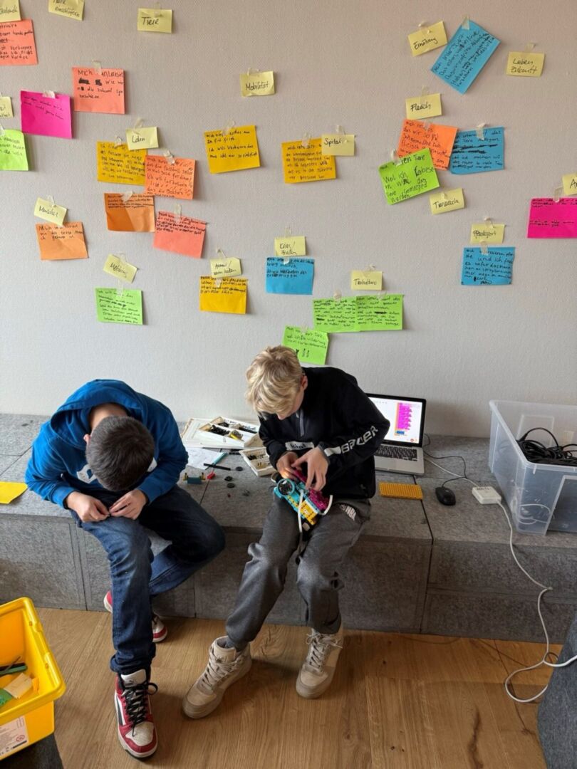 Es ist Mittwochmorgen, die energiegeladenen Schüler:innen der 4. Primarklasse stürmen in den Raum. Mittendrin steht ein Pingpongtisch, Post-it-Zettel in verschiedenen Grössen und Farben sowie Flipcharts, Whiteboards und Bastelmaterialien, die den Erfindergeist anregen.