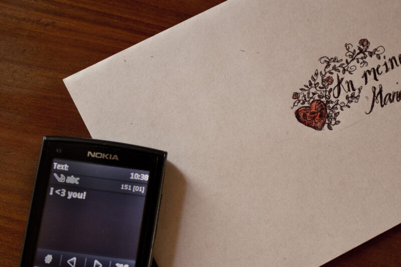 Aber keine Angst. Das Schreiben habe ich noch lange nicht verlernt. Ich schreibe immer noch regelmässig Briefe und ab und zu Tagebuch. Auch meine Agenda ist nicht auf dem Handy. Ich habe ein blaues, dickes, fettes Notizbuch, in welches ich schreibe; und auch Postkarten versende (und bekomme) ich gerne. Nur weil man eine neue Art der Kommunikation braucht, heisst es ja noch lange nicht, dass man die alten vergessen muss.